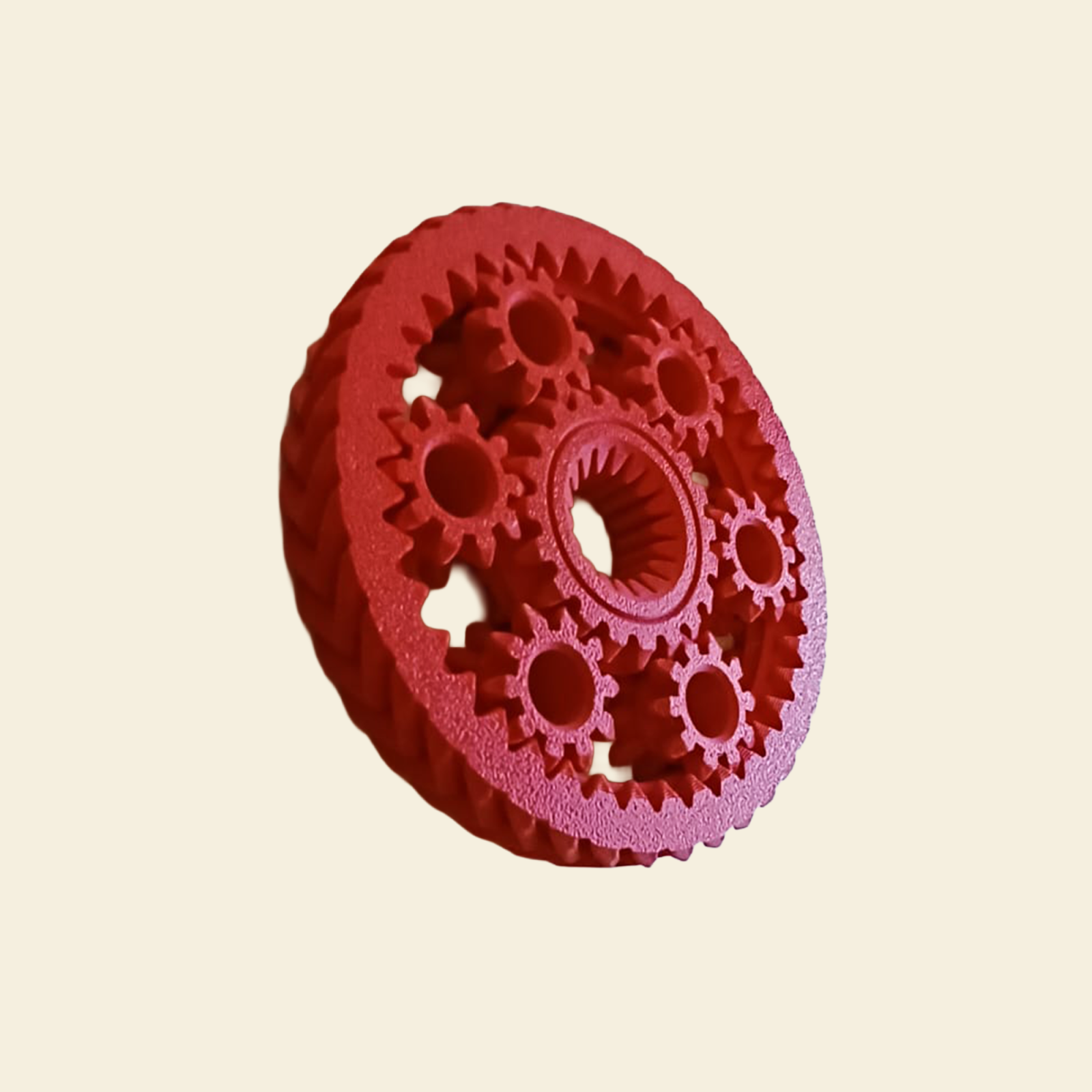Modelul este alcătuit dintr-un inel exterior fix și un nucleu central, în jurul căruia sunt dispuse multiple roți planetare interconectate. Prin rotire manuală, toate elementele se pun simultan în mișcare, oferind o experiență vizuală și tactilă clară asupra funcționării angrenajelor planetare.