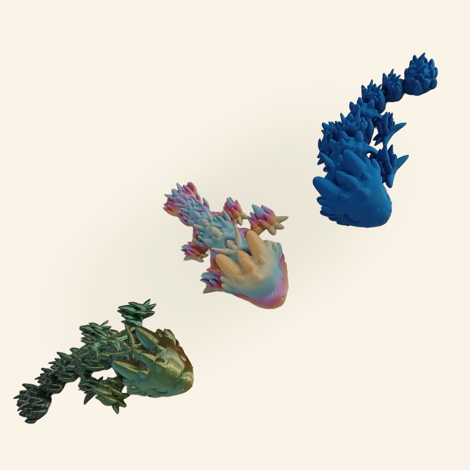 Dragon Articulat „Ripple” este o creatură imprimată 3D, cu segmente mobile și un aspect spectaculos în culori speciale sau mate. Un obiect interactiv, perfect pentru colecție, birou sau cadou fantasy.
